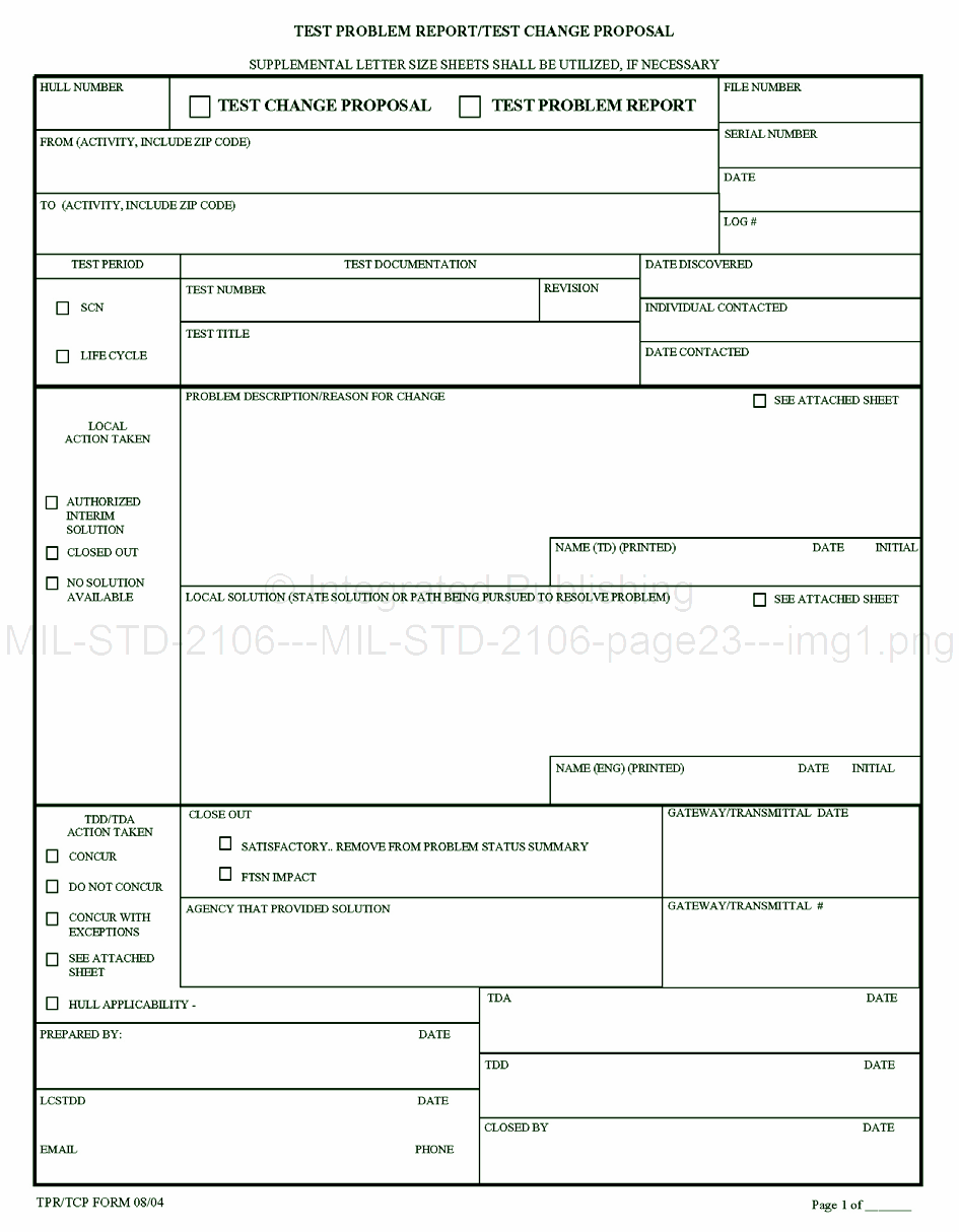 FIGURE 1. Test problem report/test change proposal sample form.